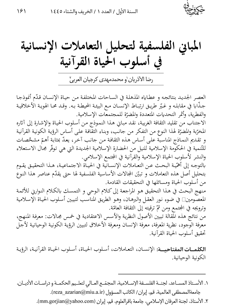 1 An assistant professor of Islamic philosophy group, High Education Complex of Wisdom and Religious Studies, al-Mustafa International University/ the author in charge